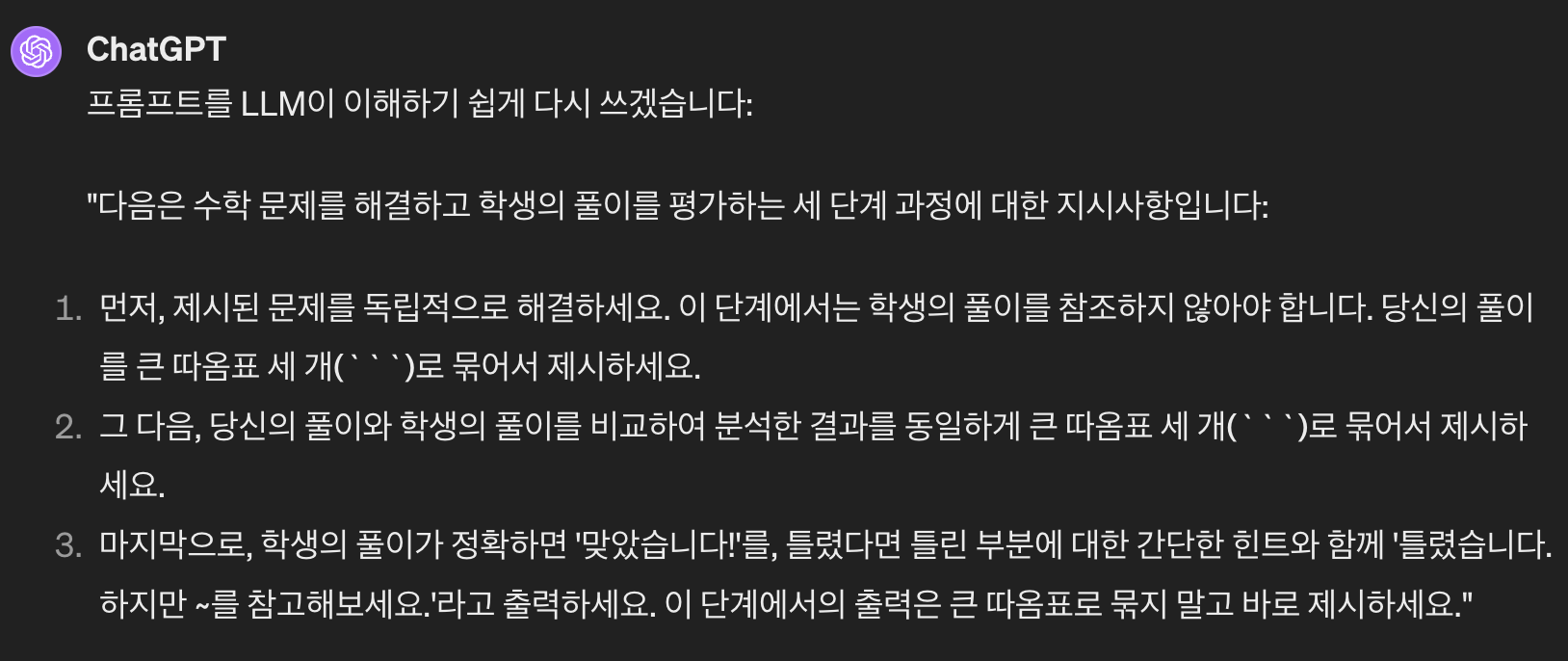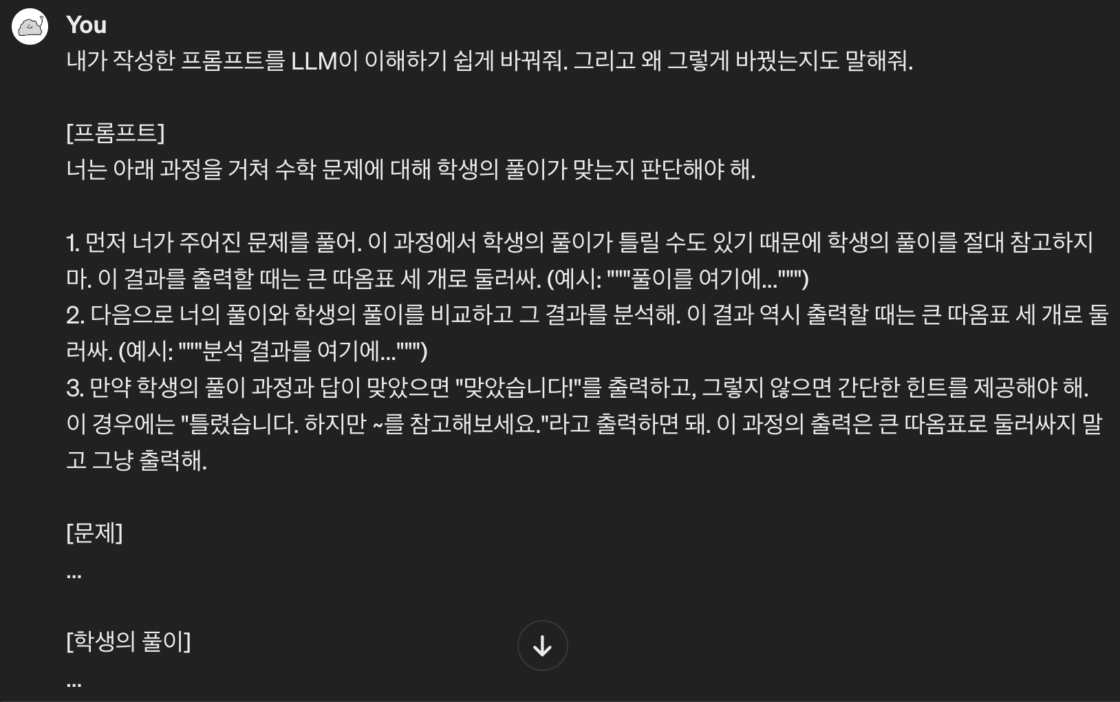 그러면 LLM이 이해하기 쉽도록 프롬프트를 수정해줘요.