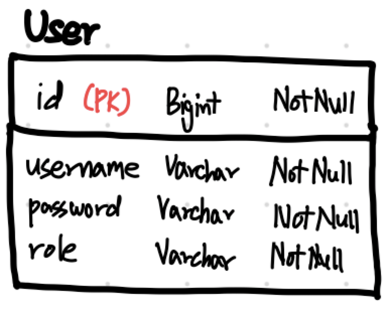 우리는 인증에 필요한 사용자 데이터만 있으면 돼서, 사용자 테이블 하나만 정의하면 돼요.